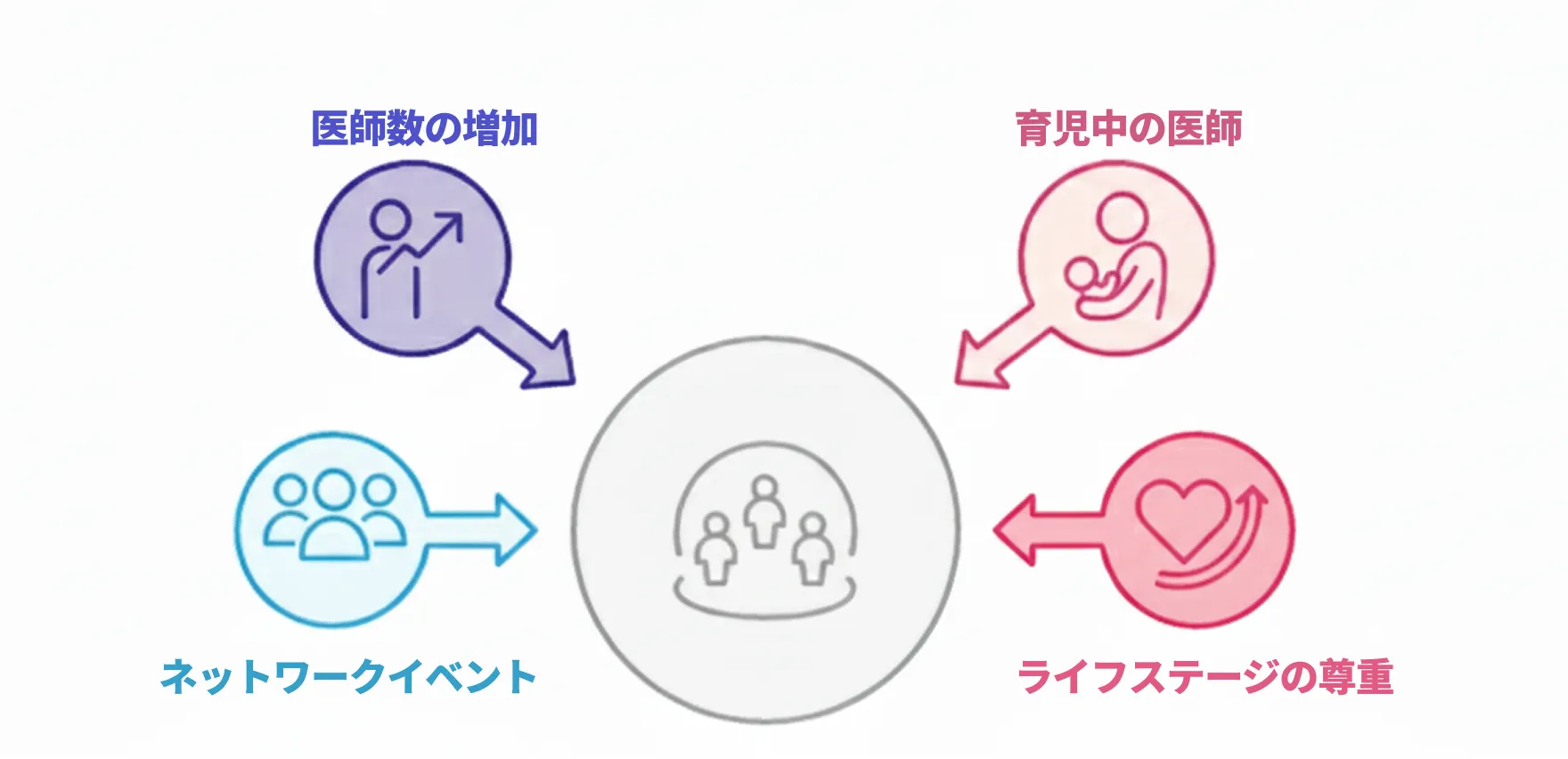 その一方で、近年は多様な人材によるチーム医療の重要性が高まり、熟練医だけでなく、若手医師、そしてライフスタイルに合わせた働き方を望む医師の存在が不可欠になってきました。