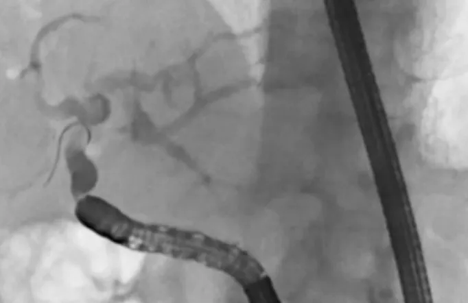 胆道鏡POCS・膵管鏡POPSを用いた結石破砕術。膵管鏡を用いた治療は大学病院での許可の元、積極的に行っております。