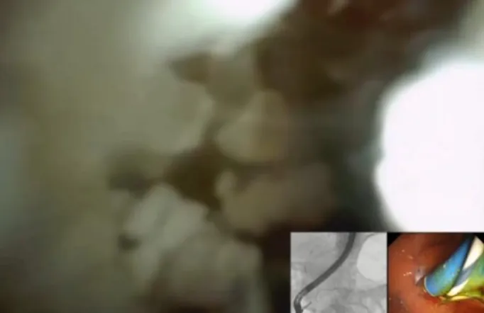 - 治療困難膵石・胆石に対する胆道鏡(POCS)を用いた電気水圧衝撃波結石破砕術(EHL)